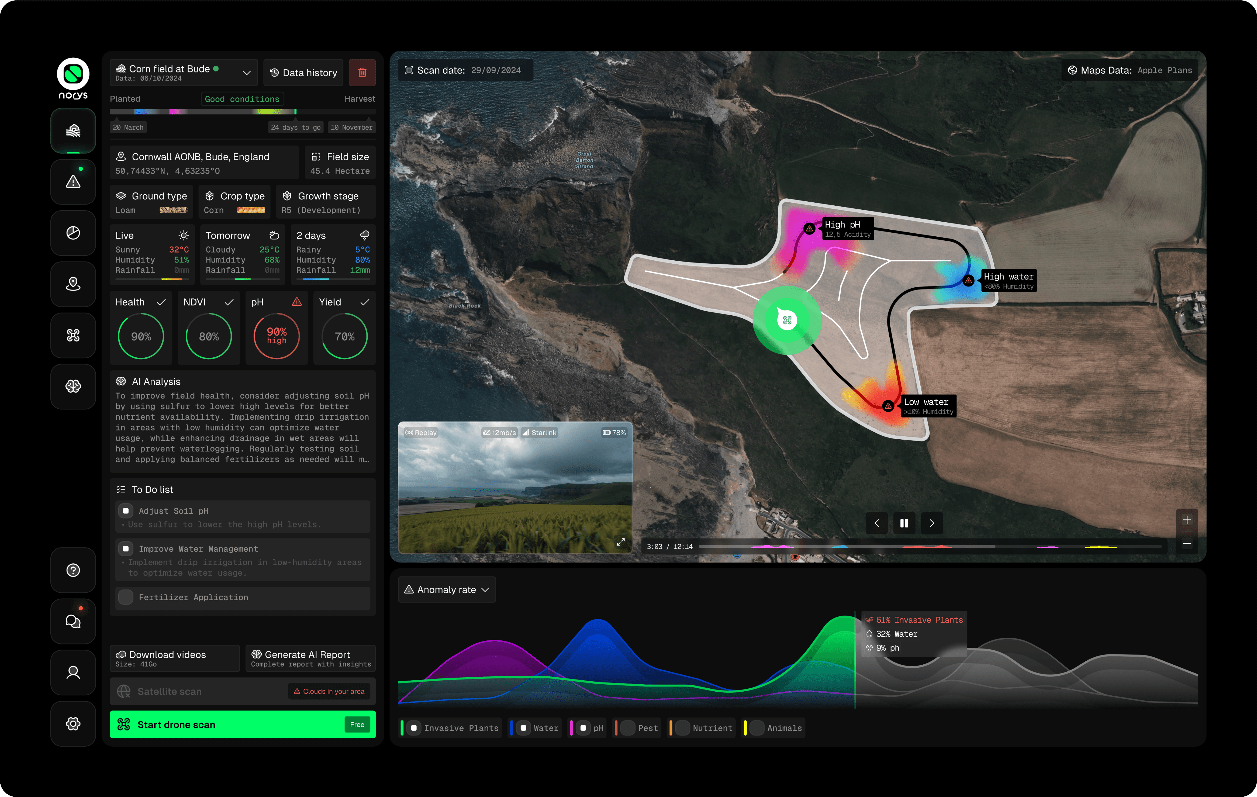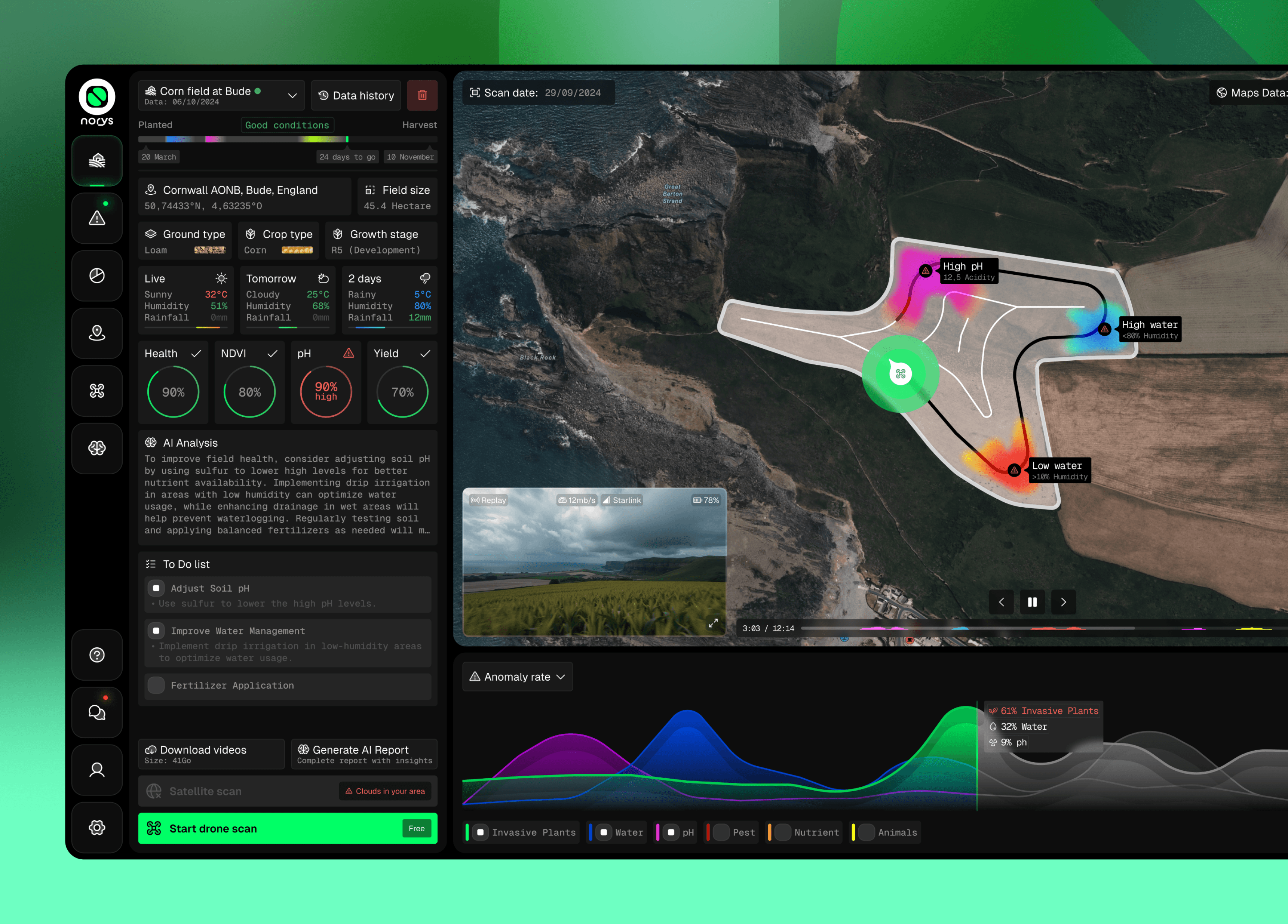 Outcome: Norys improved productivity and resource management for farmers, with a streamlined interface that made it easy to monitor large fields using drone technology and AI.